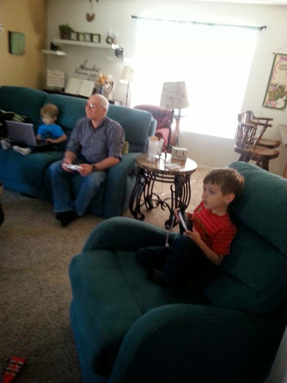 Grandpa also played Monster Truck Wii with Seth. I thought Seth was going to jump out of his socks with excitement when Grandpa said he wanted to play. (And yes, Kai is on the computer. Lol!)